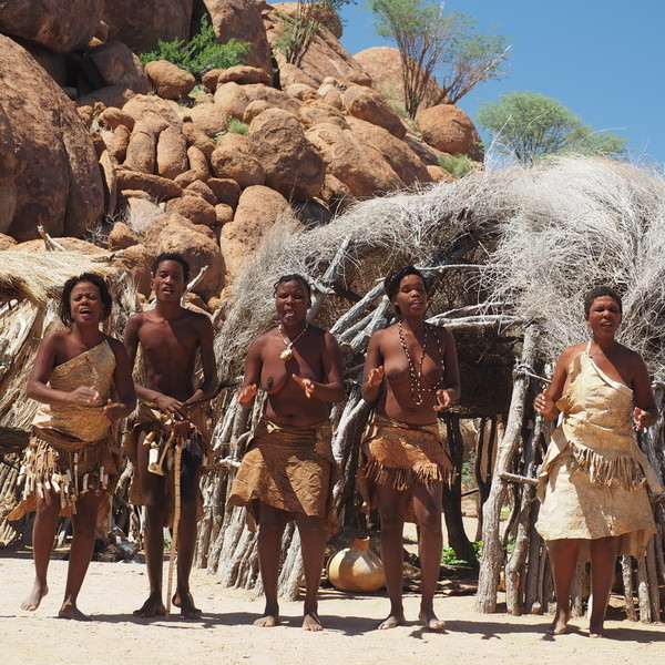 Kurz hinter Twyfelfontein machten wir in einem Damara-Dorf einen Zwischenstopp. Natürlich für Touristen eingerichtet. Aber auch sehr anschaulich, um einmal die Kultur und das Leben in der Region kennenzulernen.