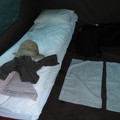 Und dann ging es ins Bett. Manu und ich schoben erst einmal die beiden recht bequemen Liegen nebeneinander und schliefen dann sofort ein.